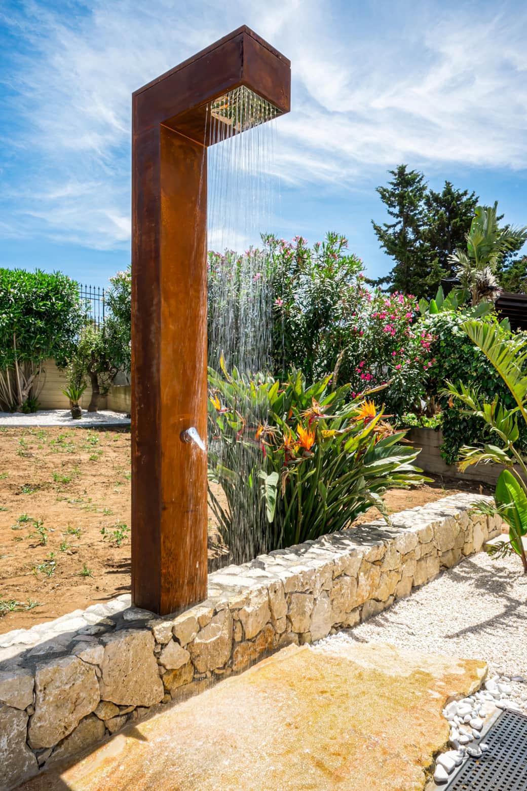 The spacious and airy veranda is the heart of outdoor living: an elegant wooden table and a barbecue area — equipped with both gas and charcoal grills — create the perfect setting for Sicilian-flavored lunches and dinners. For added convenience, you’ll also find an outdoor hot-water shower and a dedicated laundry corner, enhancing the comfort expected from villa rentals.Â
